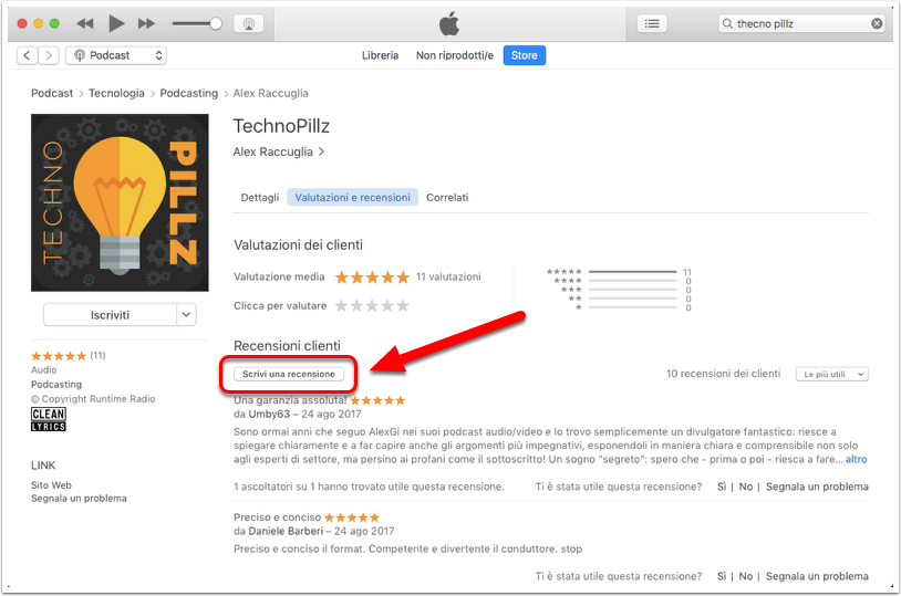 Di seguito vi spiego come fare una recensione su iTunes di questo o di altri podcast.